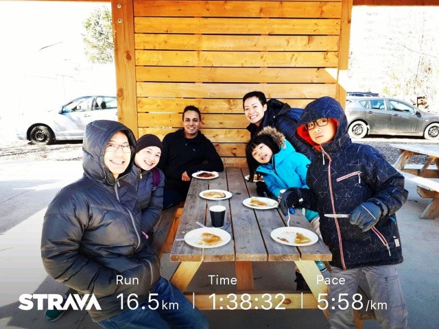 At about 10km into the run, I felt a dull pain in my lower back, similar to what I felt in the last 2km of the Chilly Half. The only thing that kept me going was the promise of pancakes with maple syrup at the end of our run!