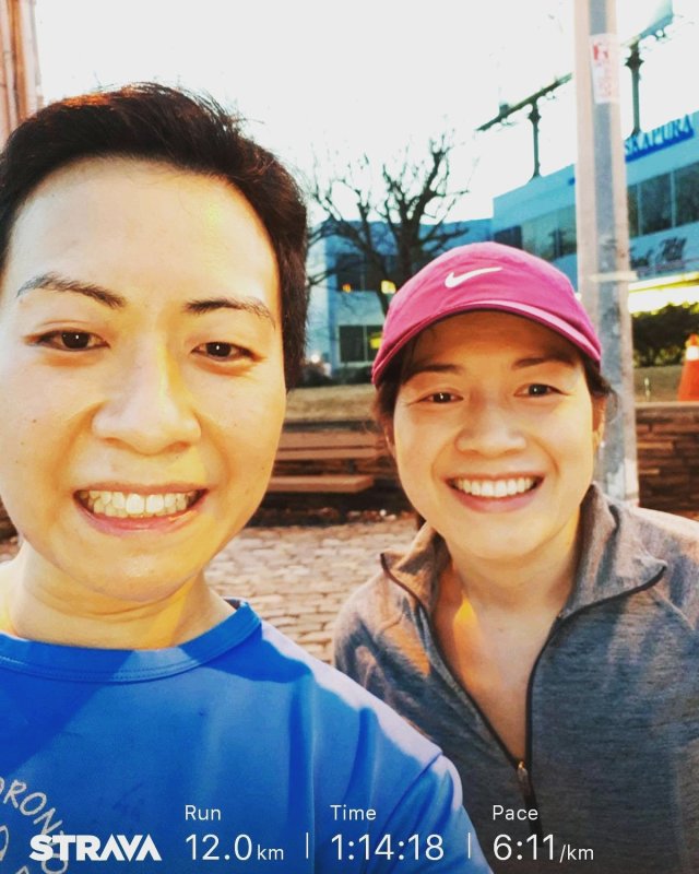 Lisa and I had an assignment from Jim. We had to track our cadence by counting one leg for 30 seconds. We did it 3 times: once at the beginning, middle, and end of our run. Each time, I got 42 which translates to 168 steps per minute. Apparently I’m supposed to be doing 180 steps per minute so I need to move my legs faster. We shall see.