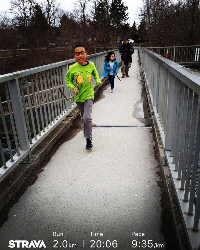 It was a rather cold and windy day to be outdoors, but my kids (and husband) were good sports. The first day of the C25K program is a 5-minute warm-up walk, followed by 8 sets of 60-second jog and 90-second walk, and ending with a 5-minute cool-down walk. By the time we were half done, we were sufficiently warmed up and the kids even took off their jackets for a bit. My kids found it fun and challenging but not too challenging. The best part: they want to do it again! 😄