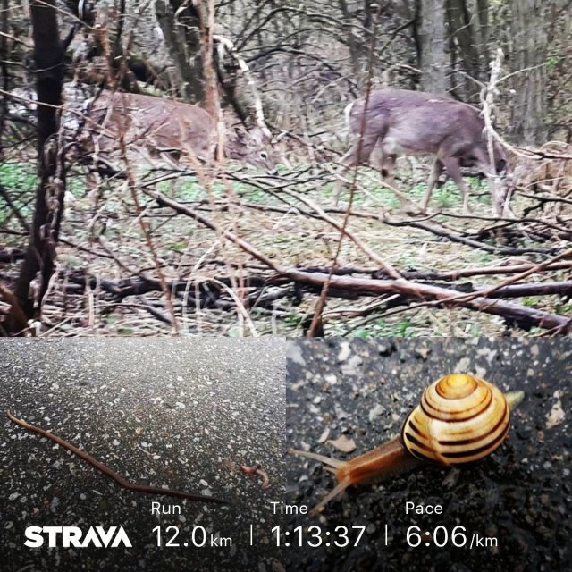 Today was slightly drizzly but warm which I thought was the perfect weather for running. Because of the rain, the snails and earthworms also came out so we were dodging them left, right, and center along the Finch corridor. I’m not sure whether Lisa was dodging them because she didn’t want to kill them or whether it was because she didn’t want to contaminate her shoes with snail and earthworm bits. I don’t have as much compassion as Lisa, so for me, it’s definitely about protecting the shoes! 😂 We also saw two deer 🦌 🦌 cross the trail right in front of us. I’m glad I didn’t miss them this time!