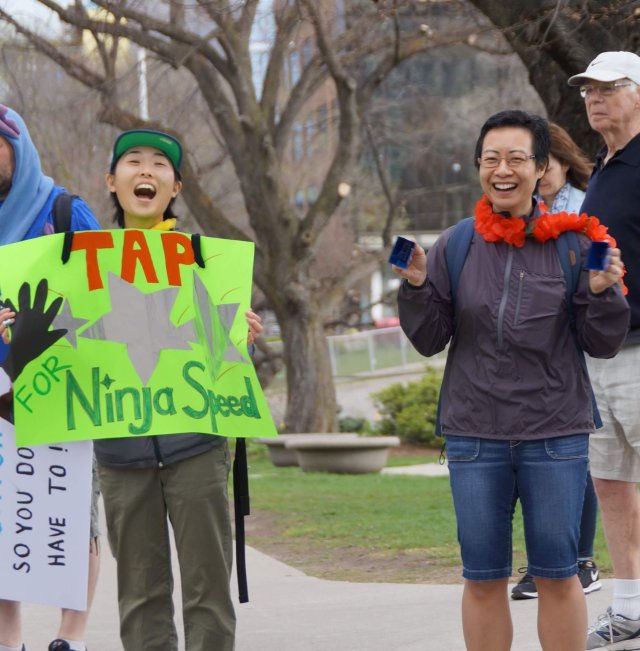 This is a critical first step. Gillian did a great job at coordinating the whole thing including planning out where we should cheer at what times to maximize the number of ninjas we would see. It was a bit tricky because we had runners at different speeds and we had both half marathoners and full marathoners and the route was slightly different. We also got stuck on a streetcar so that was a bit of a challenge. Jim was so fast that we barely caught him at all 3 locations but we always managed to get there just in time, thanks to Gillian’s awesome planning.