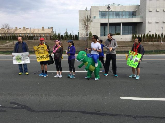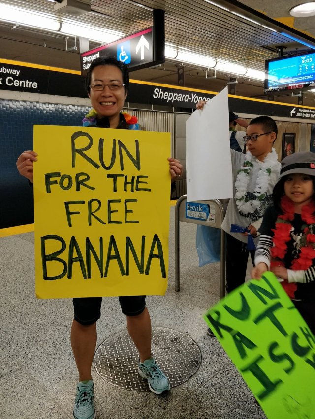 I got a lot of smiles for my “Run for the free banana” poster. This also made me smile. The trick is to write something short and punchy and to make the poster as easy to read as possible.