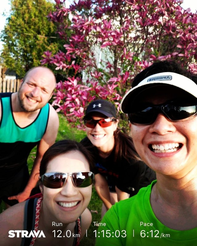 Yesterday was a 12k recovery run. The cherry blossoms are in full bloom. More people are joining us now that the weather is nice. There is no excuse.