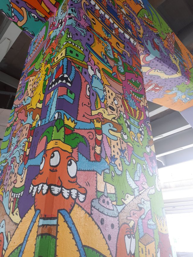 Once I met up with the ninjas, we weaved through Riverdale Farm to Graffiti Alley. I didn’t even know Graffiti Alley was a thing. It was BEAUTIFUL! This was my favourite piece. I love the bright colours and the whimsical style. It’s Dr. Suess meets Keith Haring.