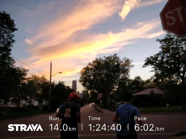 Last night, Lisa and I had to do 14k so we did 2 loops of the People’s Church route with Tracey and Benny. Ravi also found us toward the end of our first loop.