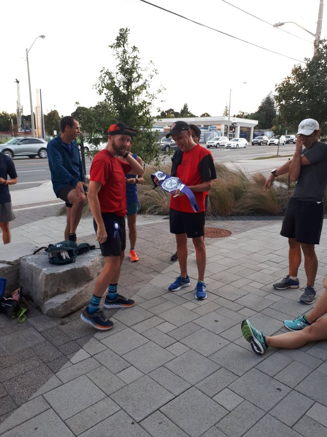 Jim also awarded Roger with the Wednesday night champion of the world belt. Roger started running when he turned 50 last year and he’s now training for his second half. What an inspiration! Maybe this post isn’t so depressing after all!