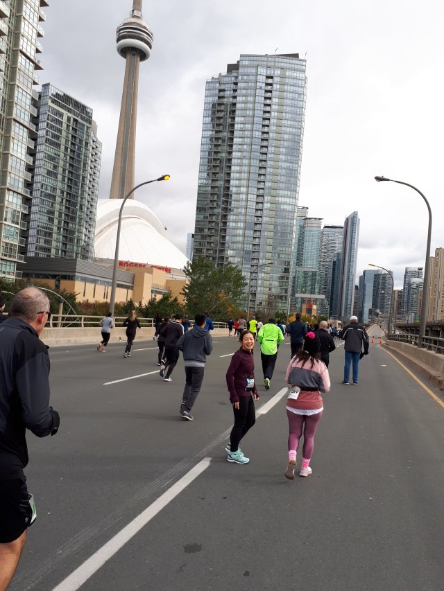 We saw Amy and Sandra cheering us at about 7km. We also saw Gary and Jim run toward us on the other side at about 8-9k. It was so great to be able to see them pass by. I also saw Matt but, in a moment of runner’s brain (or lack thereof), I totally forgot his name! Missed opportunity to cheer for him. Sorry Matt!!!