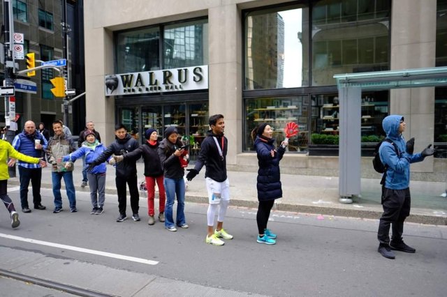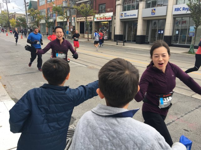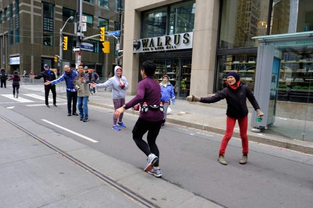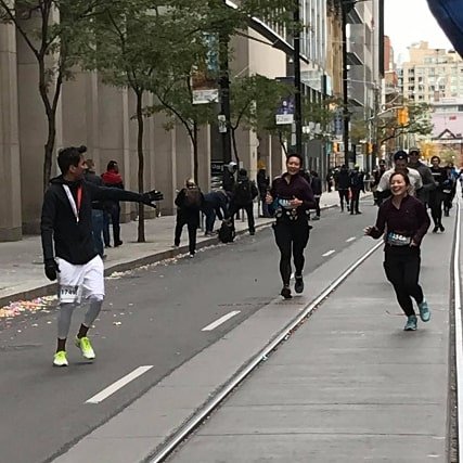 This was where we were expecting to see the Ninja Cheersquad. And right on cue, they were waiting for us at Wellington and Bay. They had the best high-five line set up just waiting to give us that last push to the finish.