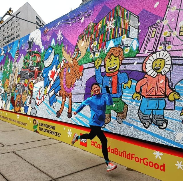 Then we ended our 16km run at Nathan Phillips Square to see the Lego mural. It’s a lenticular. I love saying that word. 😁