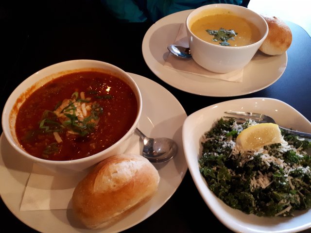Then it was off to Hamilton with Lisa, Tracey, and Maggie for a girl’s getaway. While driving there on the highway, there were patches with pretty low visibility. I’m glad the race was not on the Saturday. When we arrived in Hamilton, we went to a place called The Burnt Tongue for lunch. I ordered a bowl of chilli and a kale salad. It took every fibre of my being to order a salad instead of fries but I’m glad I did because the chilli was so huge I couldn’t finish, which is pretty rare for me. Both were delicious. Perfect for a cold rainy day.