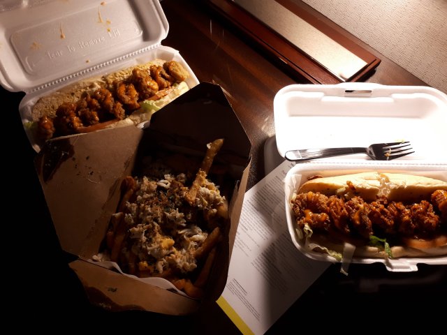 When my husband and I decided to do a couples weekend trip to NYC, I decided to make it into a runcation. Of course I did! So, this is both a race report and a vacation report. 😂FridayWe flew into Newark on a Friday night, checked into our hotel in Newport, had poboys and crab fries from a place called Just Beclaws (there was a 1.5hr wait at the restaurant so we did takeout). The crab meat fries were the best. Our weekend was off to a great start!