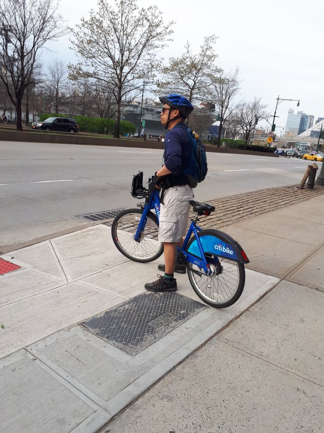 We stood for another 2.5 hours during the show…probably not the best idea for the day before a race but oh well! I had no idea what the show was about. Turns out it was super offensive but my husband really wanted to see it because it’s by the same writer as South Park. At least we didn’t pay full price!After the show, we parted ways with Katie and Elon. We rented Citibikes and rode toward the Hudson River. I’ve always wanted to try those bikes. The bad thing about the bike is that you have to dock them every 30 minutes and 30 minutes passes by really fast, especially when you aren’t familiar with the city.
