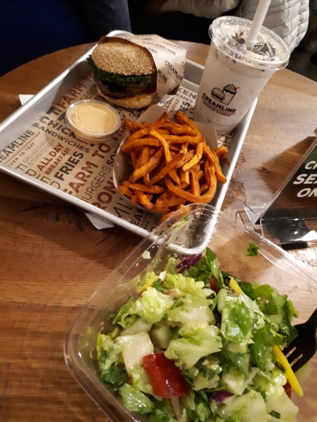 Chelsea market had lots of different food options but I wanted to have a lighter meal before the race so I just had salad. I was so sad… It wasn’t even a good salad. Meanwhile, Jeremy went all out and had a burger, sweet potato fries, and a milkshake. 😭😭😭