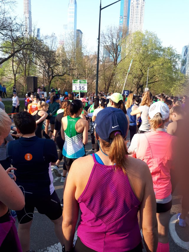 We left the hotel at 6:45am and walked to the Path train just like the day before and expected it to take us to Manhattan within 30 minutes. Since the race started at 8am, I thought I allocated a lot of time to get there but after waiting for over 20 minutes and the train was still not coming, we decided to go with plan B and took an uber instead. 🤬🤬🤬 Even with the uber, we only got there 10 minutes early so I’m sure we would have been late had we not switched to plan B.