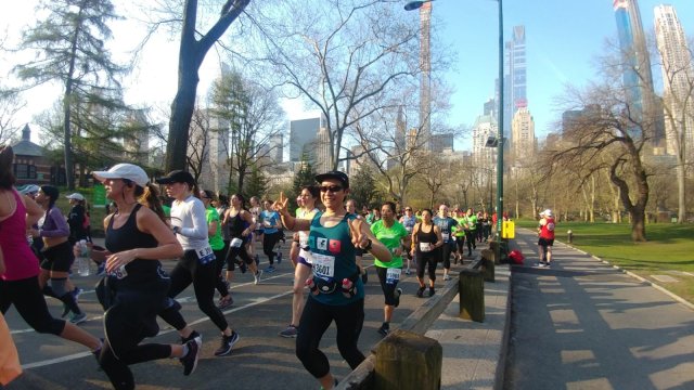 Because the route is 2 loops around Central Park, Jeremy was able to see me 3 times. It was great to see him on the course.The first 2 miles, it was really crowded and I was just trying to keep up with the pacers. After that, the crowds thinned out and I passed them. By 5k, I actually caught up to the 1:50 pacers so I just stayed with them for the next little while.There was tons of water and Gatorade on the course. Because Gatorade doesn’t agree with me, I had my own Nuun. I also took an Endurance Tap every 45 minutes.TMI: At about 10k, I started to feel like I needed to go 💩 but I also didn’t want to go to the port-a-potty. The next 11.1km was the longest 11.1km I’ve ever ran. Let’s just say, there are port-a-potties on the course for a reason.