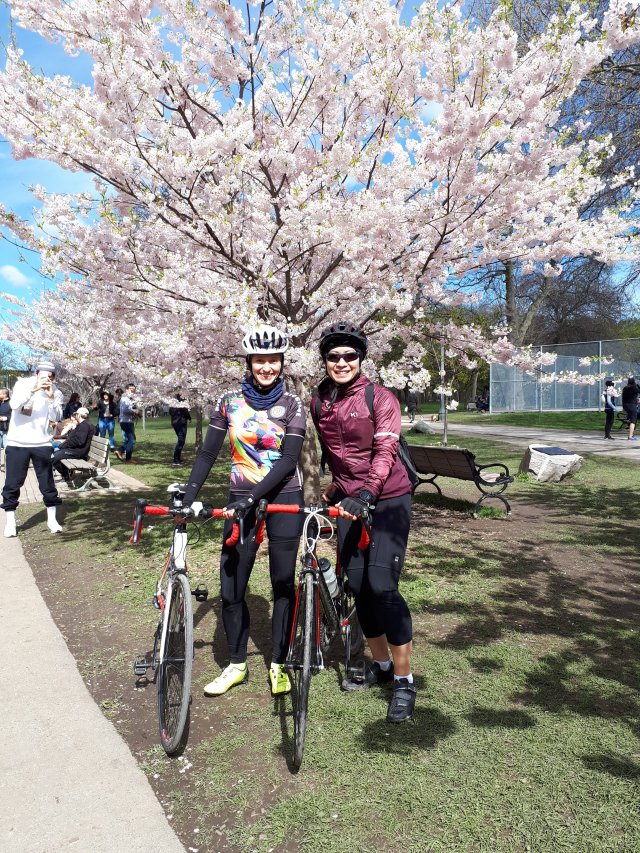 The ninjas ran to see the cherry blossoms at Trinity Bellwoods Park this morning but because I couldn’t run yet and had FOMO, I decided to bike there to meet them. Originally, Ravi was supposed to bike with me but turns out he didn’t want to bike downtown. He wanted to do a 3hour ride starting at 5am. No thanks. 😂 Thankfully, Katie wanted to bike with me so the 2 of us decided to go for it. It was only my 2nd ride on the bike and I ended up biking 35km downtown. Sounds impressive until I got mocked by a couple of fellow RunNinjas (i.e. Benson and Jim) that I just coasted down because it’s net downhill. I was a bit hurt but even my Strava thought this was an easy effort! 😂