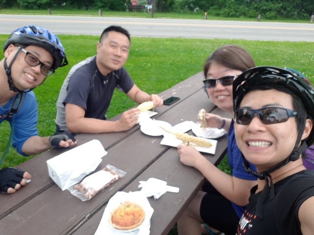 We started out in Niagara-on-the-Lake on Saturday, parked our cars in a free public parking lot on the Niagara Trail. The parking lot had a sign that said no parking between midnight to 6am but our friends told us to put a note on our car that said we have gone cycling and would be back on Monday. So sketchy but apparently that’s what people do!