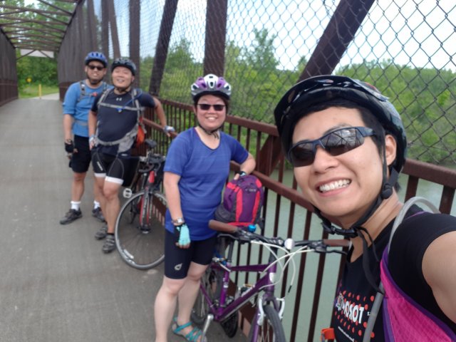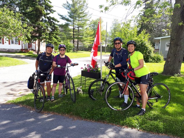 We then headed toward our 1st AirBnb in Welland. The route was mostly flat and very enjoyable. Eric was in the front navigating and I mostly hung out in the back of the pack and coasted to make sure everyone was ok. Jeremy had to carry all our stuff in a panier on his bike which made his already heavy mountain bike even heavier. Poor guy, he had to work so much harder than the rest of us.