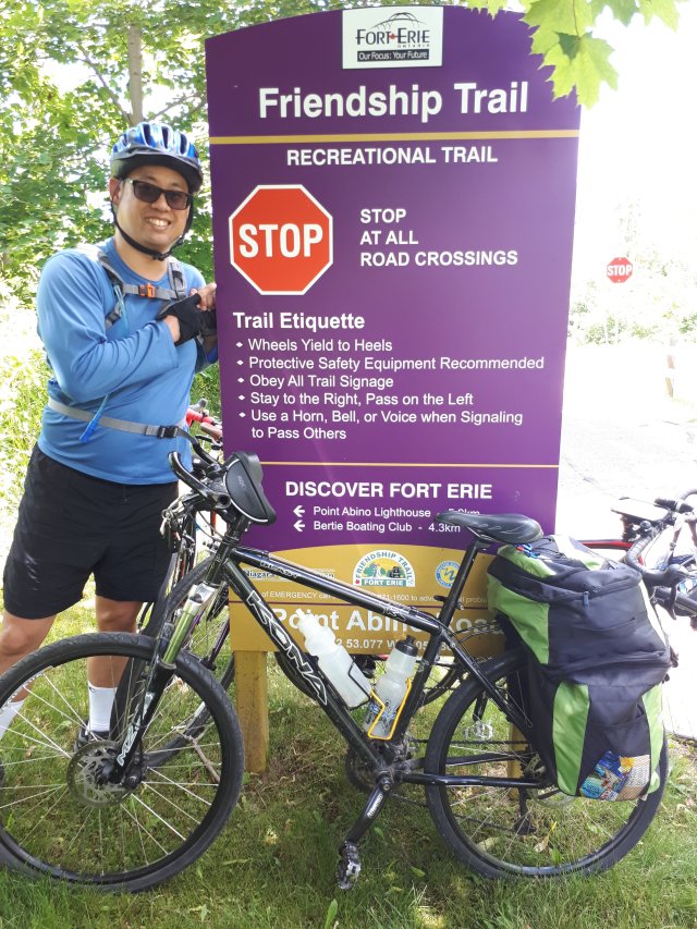 We made toast and scrambled eggs for breakfast and took our time getting ready. We headed off toward Fort Erie and passed by the Welland International Flatwater Center where I did my first triathlon last week. We stopped for lunch at a local diner in Port Colborne and biked a very long straight, flat, paved trail called the Friendship Trail.