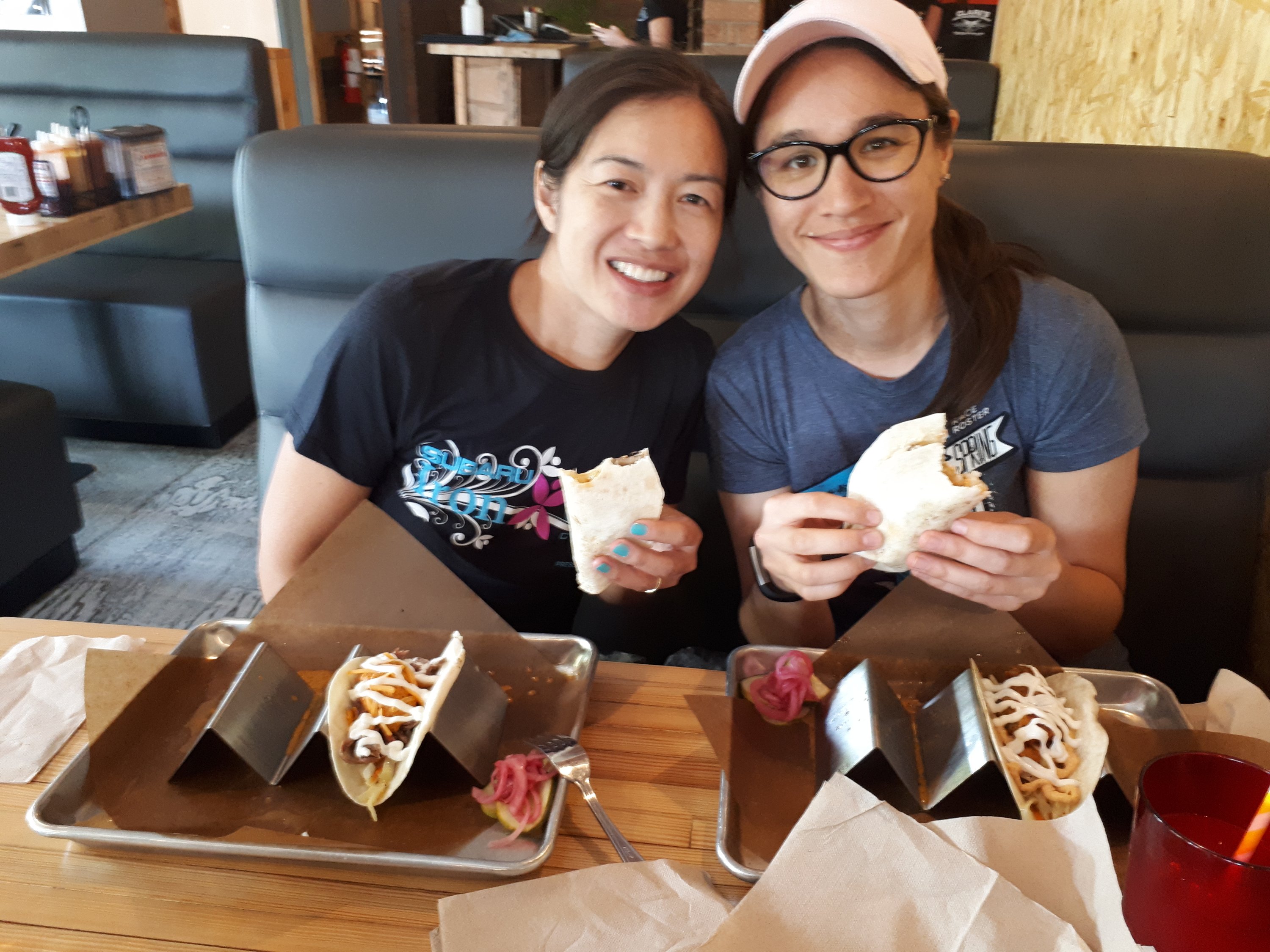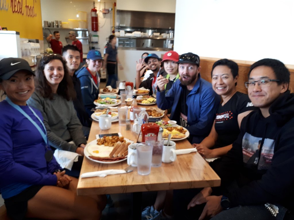After the race, they gave out pizza and a donut to all the finishers. The donut was surprisingly good. We stayed for a bit and then went to have a proper lunch before driving back to Toronto.