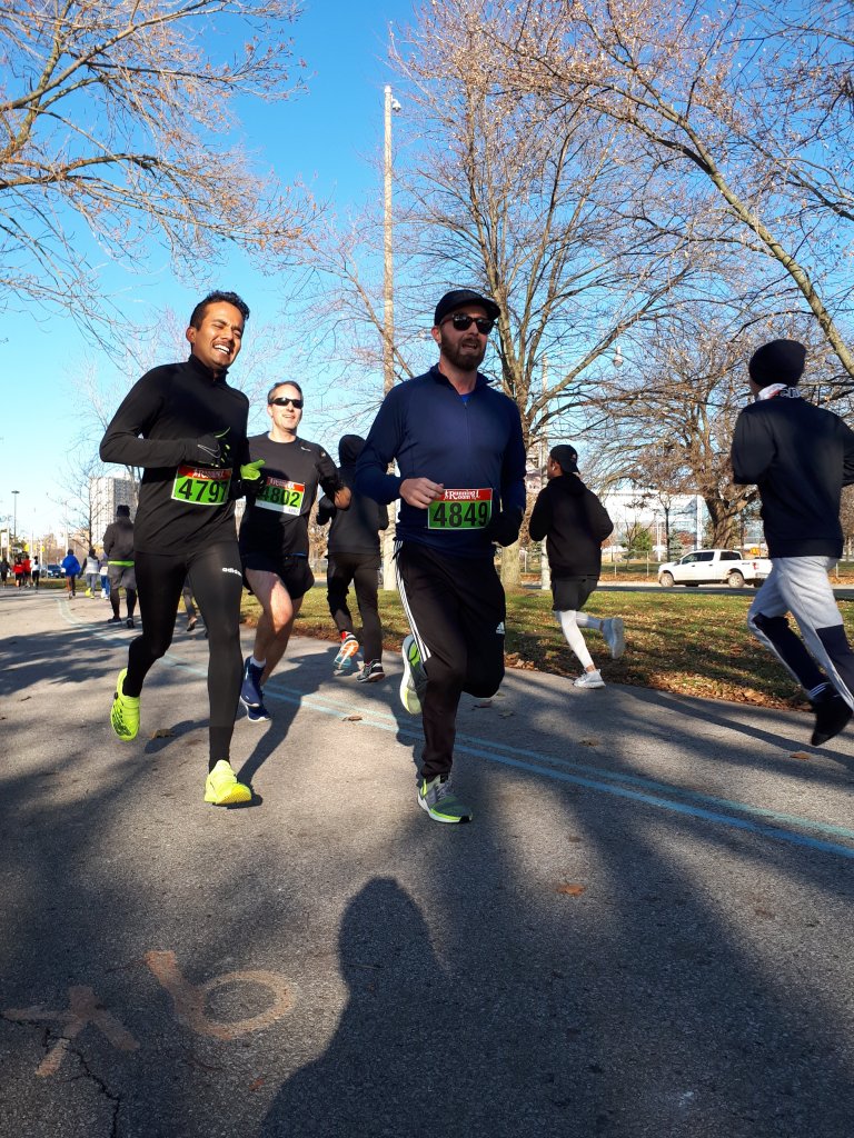 Parm, Jim and I drove down to Bold and Cold together. The plan was for Jim to pace Parm and I would just do an easy 5k since it wasn’t officially chip-timed anyway. We did a warm-up together and off they went. On the course, I was able to take a photo of them running back toward me. Parm looked like he was dying.